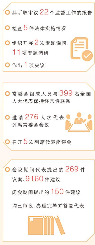 翻阅全国常委会工做演讲,一年来监视工做“成就单”令人注目:统筹放置听取审议专项工做演讲,强化财务经济工做监视,结实做好法律查抄,细心组织专题调研……代表们暗示,监视工做选题准、工做实、成效好。